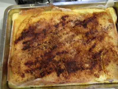 Earlier today I made two big noodles with a sweetish cheese filling in between. It is less work than making actual blintzes.
