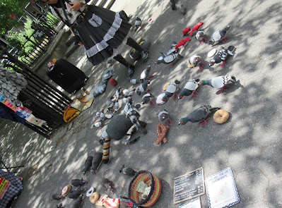 If you look carefully you can see an actual pigeon wandering among the stuffed ones. You can see the artist in her ruffled skirt.